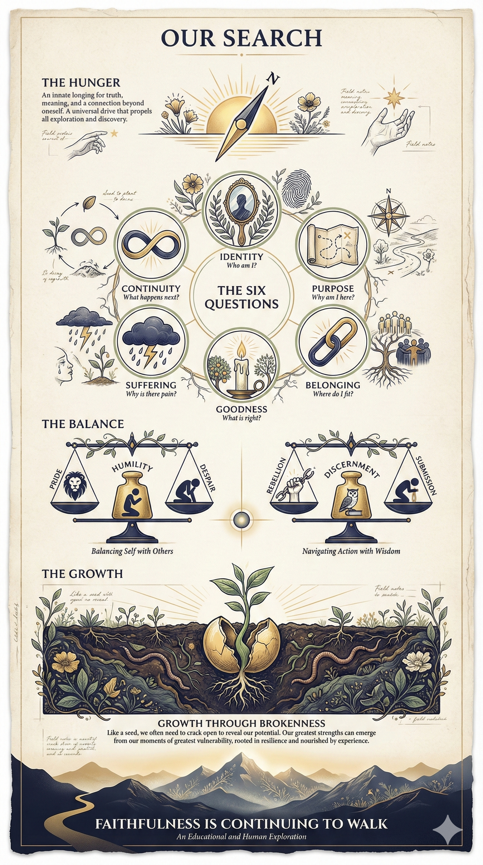 If these Words of Plainness presented only firm conclusions as final declarations of truth, they would betray their subject. The hunger we share—for meaning, for truth, for something substantial enough to stake our lives on—is not a problem to solve in a single go. This personal searching and striving is not a "One and Done" experience. It is a necessary, ongoing tension to live within. The traditions that sustain people do not offer final answers but livable frameworks.